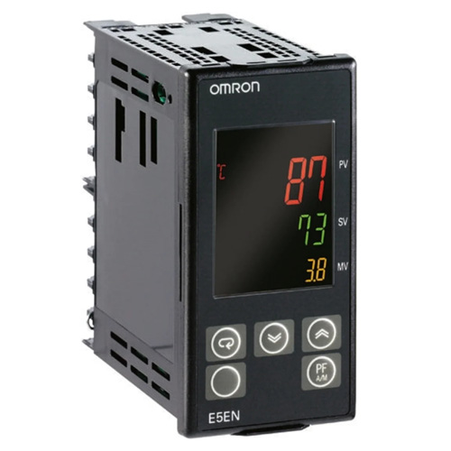 - Bộ điều khiển nhiệt độ Omron E5EN hiển thị đồng thời ba giá trị: PV, SV, MV.